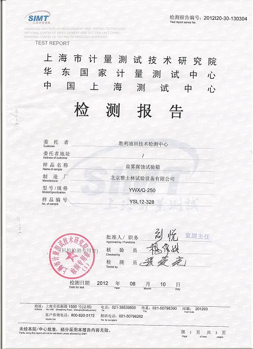 >>鹽霧腐蝕試驗(yàn)箱檢測(cè)報(bào)告-上海計(jì)量院-勝利油田