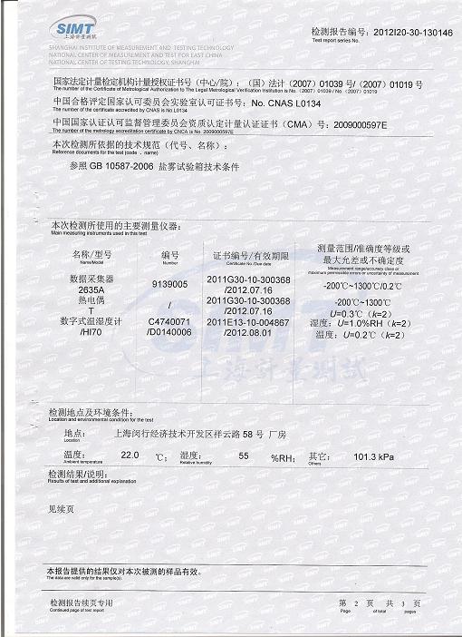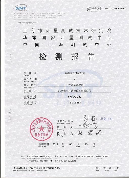 >>鹽霧腐蝕試驗箱檢測報告-上海計量院-首都航天