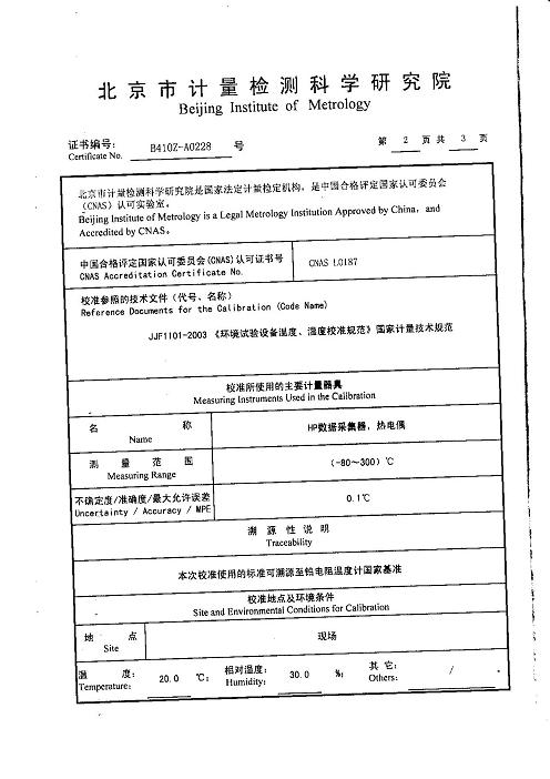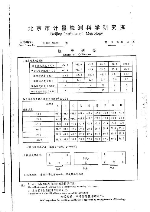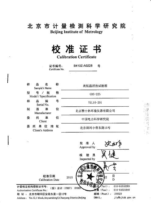 >>高低溫濕熱試驗箱校準證書-北京計量院-中國電科院2