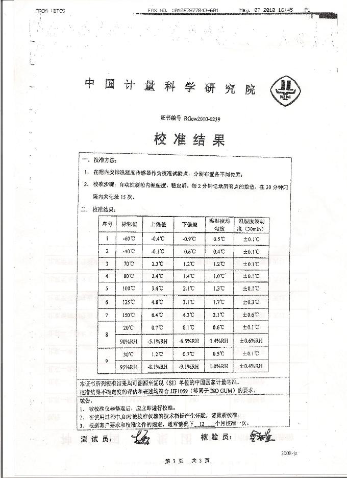 高低溫濕熱試驗(yàn)箱校準(zhǔn)證書-中國計(jì)量院-國家雷電測試