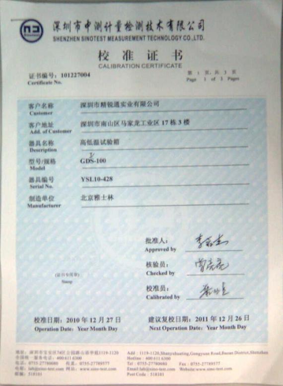 ·高低溫交變濕熱試驗(yàn)箱校準(zhǔn)證書(shū)-深圳中測(cè)計(jì)量-深圳精銳通
