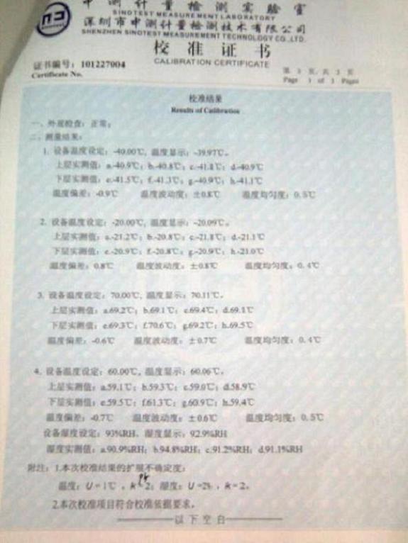 高低溫交變濕熱試驗(yàn)箱校準(zhǔn)證書(shū)-深圳中測(cè)計(jì)量-深圳精銳通