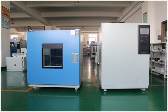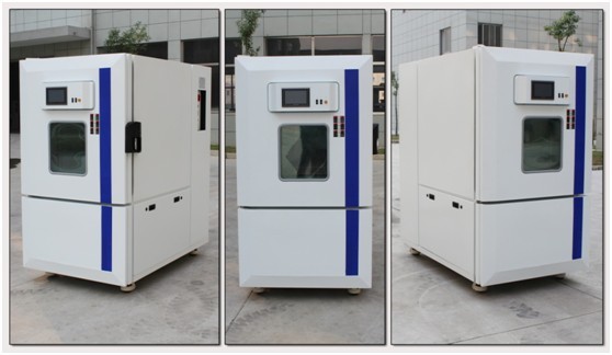 YASELINE品牌:標準型高低溫試驗箱,左側上面為工作室部分,下面為壓縮機部分,右側為控制系統(tǒng)。頂部凸出部分為循環(huán)電機。試驗箱是整體式的,不可拆開。